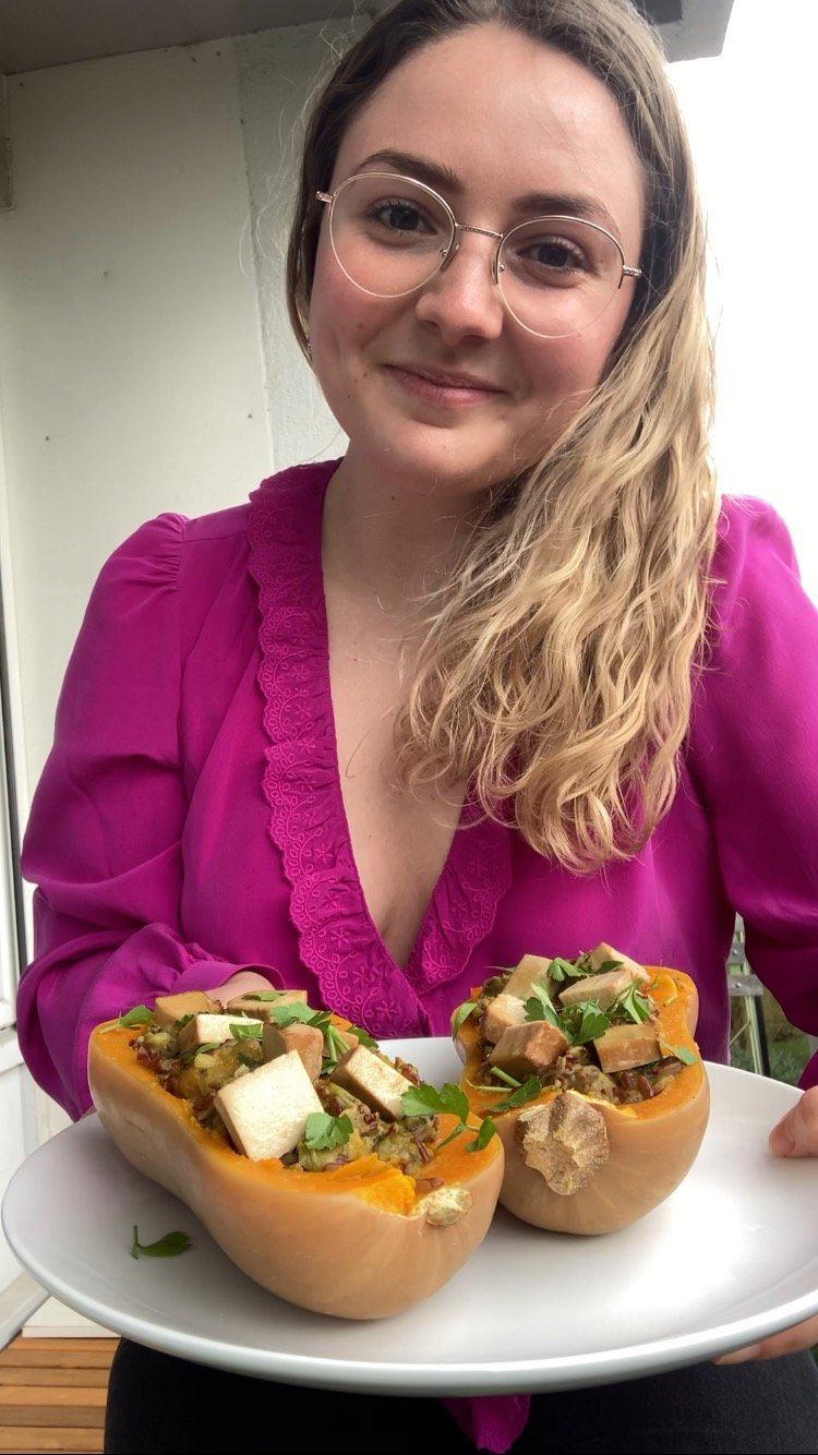 Régalez-vous avec une recette de butternut farcie, à la fois originale, équilibrée et nutritive. Cette recette vegan complète associe du tofu grillé, riche en protéines végétales, à la courge butternut, reconnue pour ses antioxydants, et au riz rouge, une céréale naturellement riche en fibres.